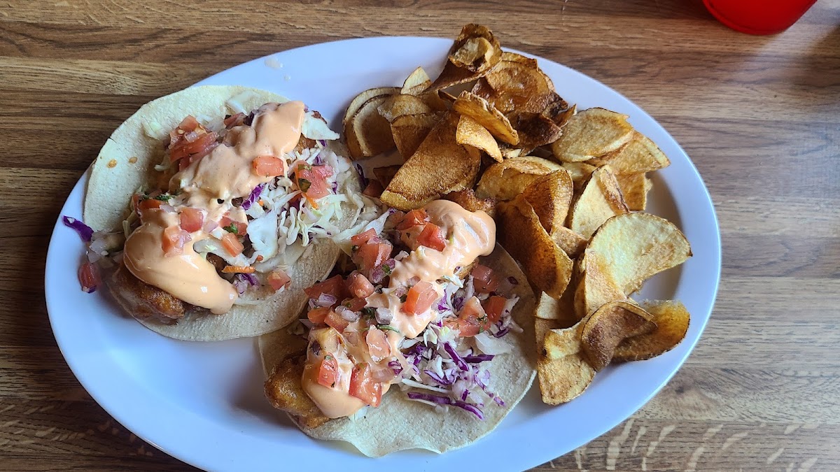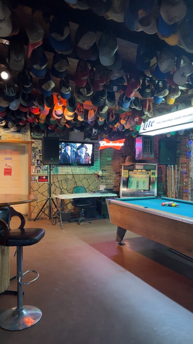 We did not eat, grabbed drinks from the general store attached. We had to go through the bar and restaurant, it was so cool! The staff was helpful and nice, the bar was like stepping back in time! Hats hanging from the ceiling, dollars on the walls, pool tables and dart boards. There was a band setting up out back. If we had more time we would have stayed, I cant wait to go back!